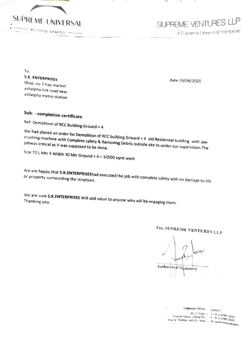 Demolition of RCC building ground+4 old residential building with jaw crushing machine at Supreme Universal company.